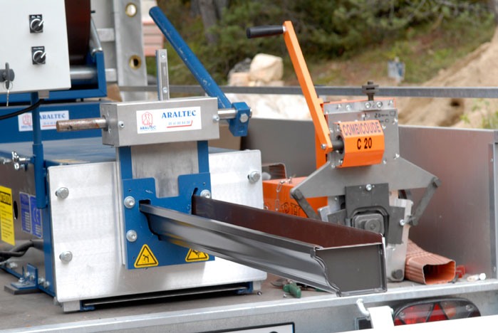 Notre profileuse ARALTEC nous permet de profiler des gouttières en aluminium laqué en continu sans joint ni soudure.